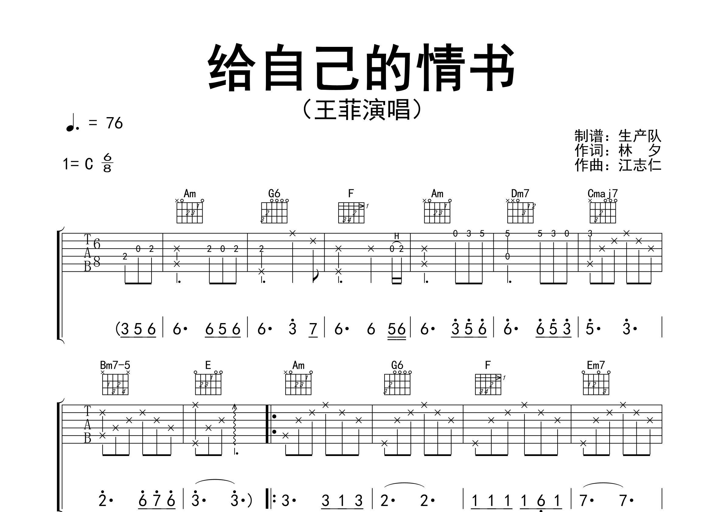 给自己的情书(原版吉他谱)【怀旧经典】