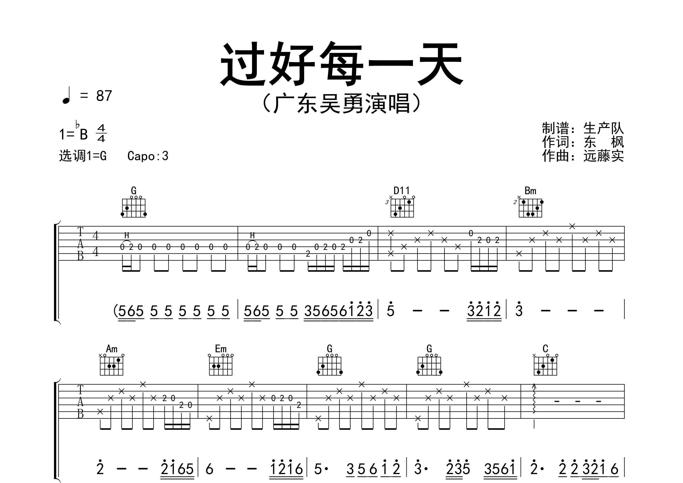 过好每一天(原版吉他谱)【好歌推荐】