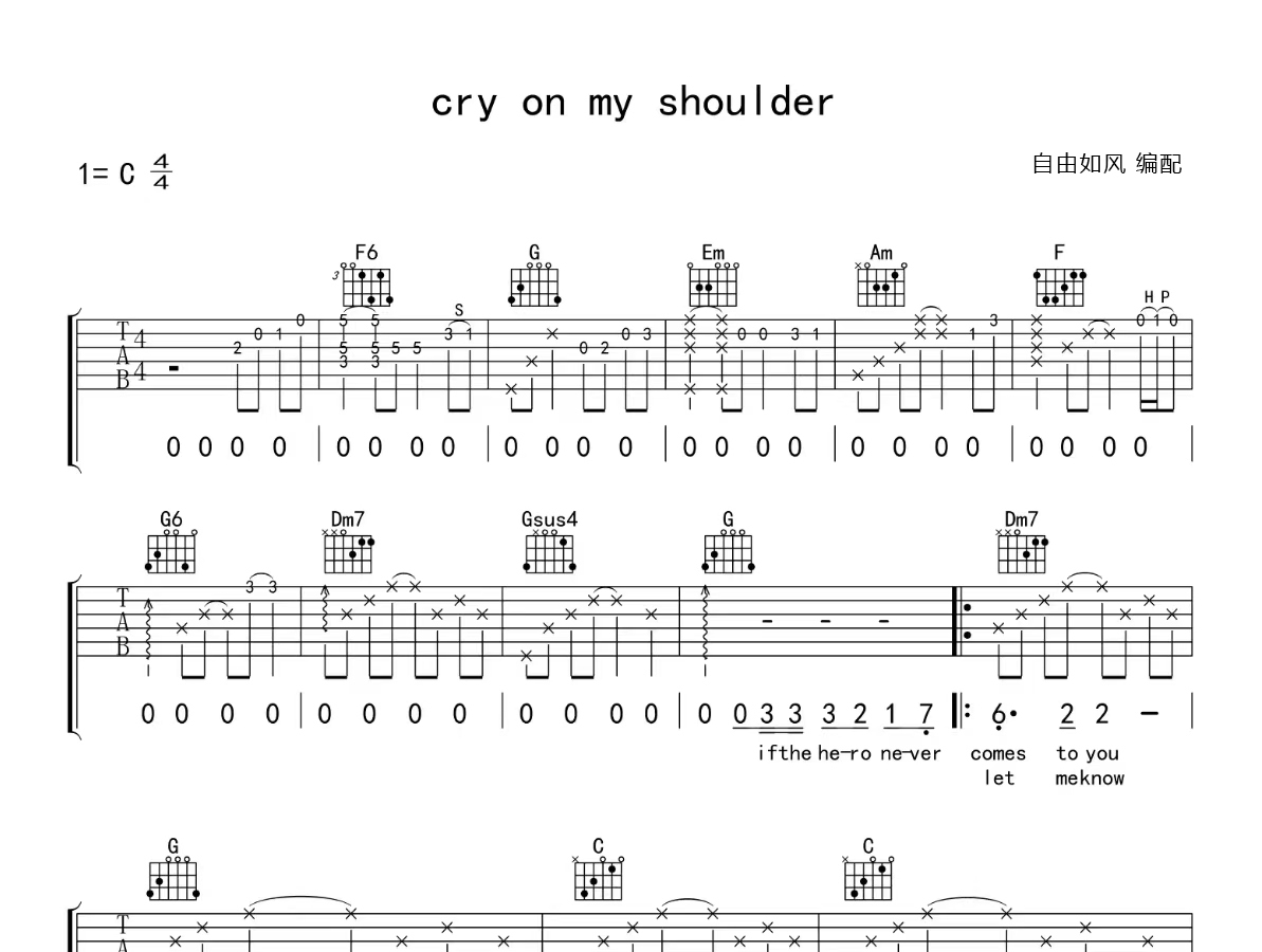 cry on my shoulder (弹唱谱)